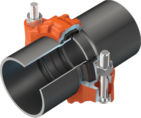 O sistema de acoplamento rígido ou acoplamento flexível utiliza tubos de aço com extremidades ranhuradas por laminação “roll groove“, estando de acordo com a FM (Factory Mutual Global), a NFPA (National Fire Protection Association) e ABNT (Associação Brasileira de Normas Técnicas)